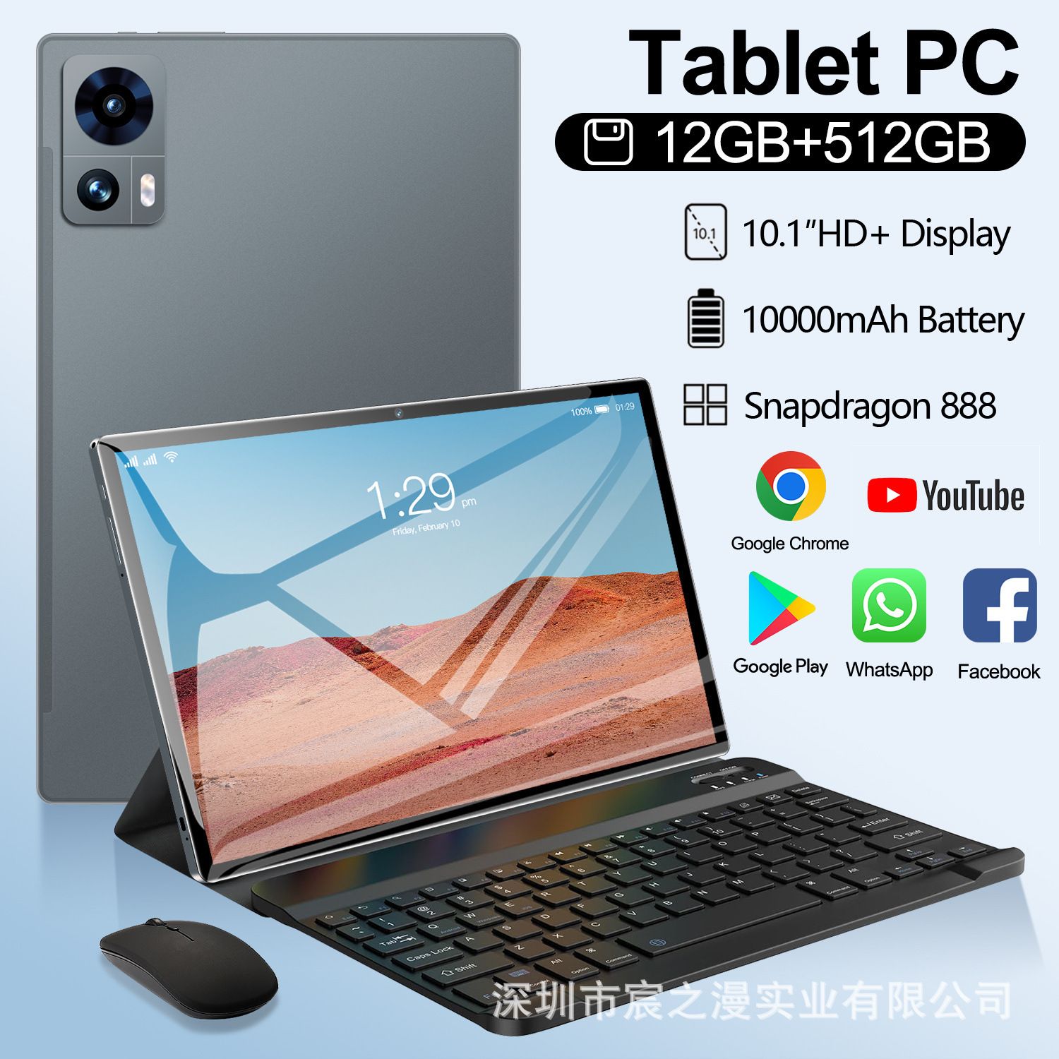 High Configuration 10.1 Inch Quad-Core Tablet PC with 12MP Dual Camera, 8GB+256GB Memory, Android 13, 2K IPS Screen