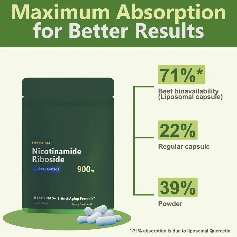 Resveratrol High Purity NAD Supplement for Skin Management 80 Capsules Liposomal Nicotinamide Riboside Capsules