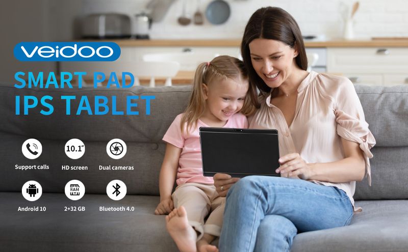 Veidoo Android Tablet 10 Inch 32GB Tablets Computer 10.1 Inches IPS HD Display WiFi 3G SIM Card Slot GPS 10 Tablet PC